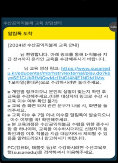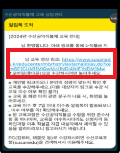2. 전송 받은 알림톡의 파란색 개인별 교육 수강 링크를 클릭합니다.