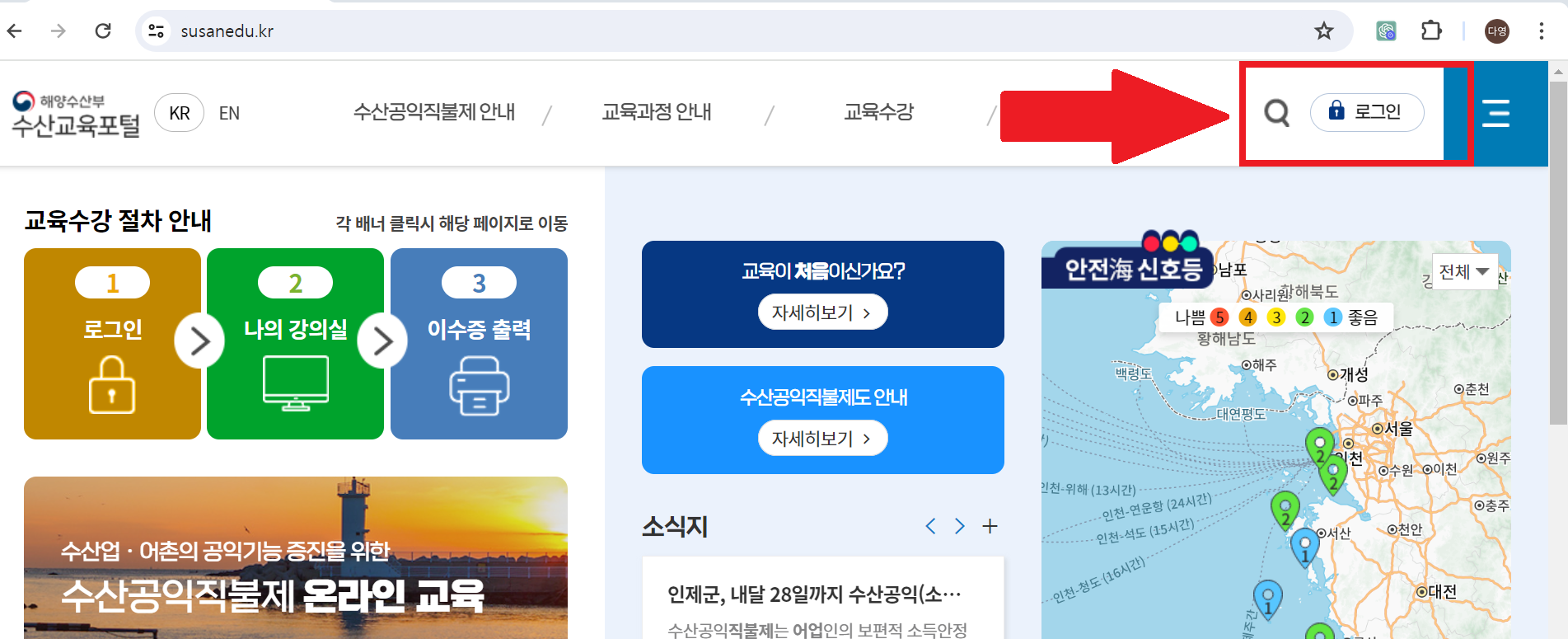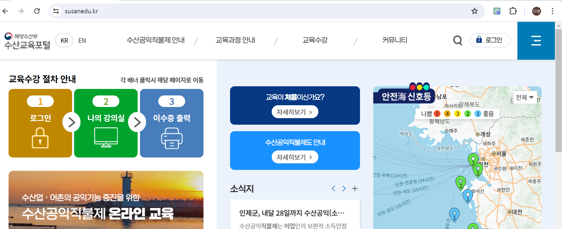 ✔️ 교육 수강은 수산교육포털 홈페이지에서 하시면 됩니다.